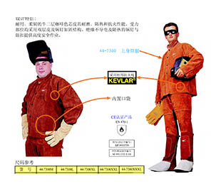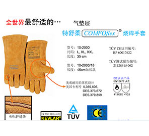 專為氬弧焊TIG焊接而設(shè)計,選用極具柔韌性、防火及隔熱的鹿青皮掌和牛二層皮袖及背制成,用KEVLAR防火線縫制,靈巧輕便,適用性強。
